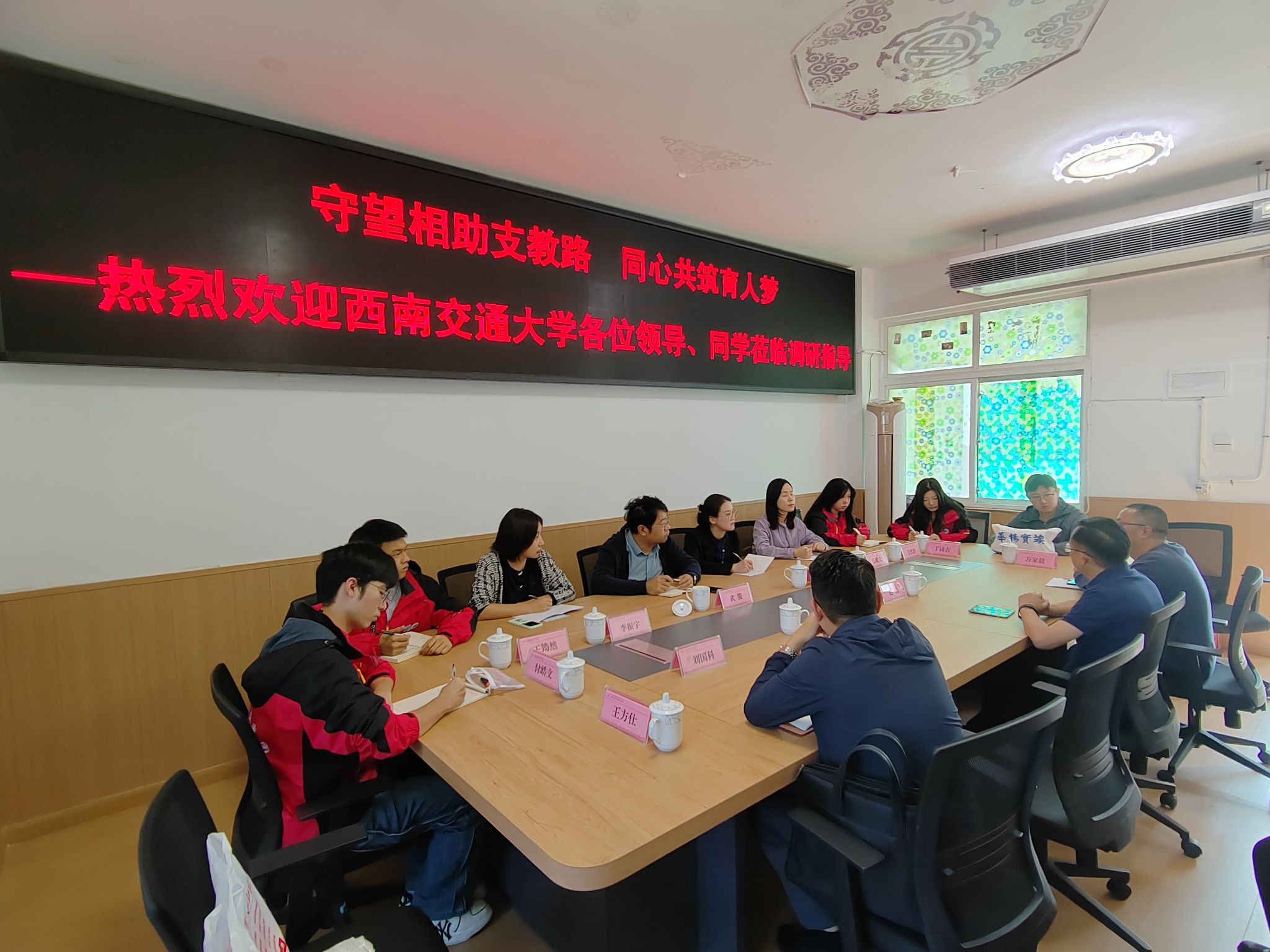 为持续推进学校对口帮扶工作,10月9日-10日,西南交通大学党委常委、统战部部长汪铮,党委常委、组织部部长朱剑松带队前往四川省马尔康市走访慰问我校第27届研究生支教团成员。校领导与支教团成员亲切座谈,深入了解了支教同学的工作与生活情况,勉励同学们珍惜一年不长的从教机会,发挥所长,用心用情做好教学和育人工作。要求学校相关部门做好研究生支教团管理服务,持续加强校地青年工作合作,切实为支教地基础教育发展贡献交大力量。学校合作发展处、校团委相关负责同志陪同参加慰问调研。