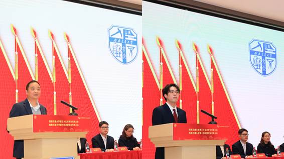 四川省学生联合会主席孙旭江代表四川省学联致词,对西南交通大学学生会、研究生会工作予以高度肯定,并对学生会组织进一步强化思想引领作用、塑造清新阳光形象、助力同学社会融入等方面提出了期望。