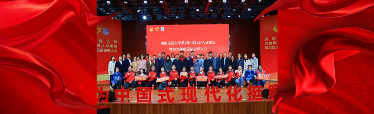 2025-11-29学校举行共青团实践育人成果展暨2025年度总结表彰大会11月28日,西南交通大学共青团实践育人成果展暨2025年度总结表彰大会在犀浦校区举行。校党委副书记高平平、共青团四川省委学校部副部长闫宇薇、共青团乐山市委书记伍文隆、共青团郫都区委书记徐潘、共青团金牛区委副书记弋欢出席活动。党委学生工作部、党委研究生工作部、本科生院、研究生院、大学生就业指导中心、校友工作办公室、档案馆、校团委等部门负责同志出席大会。表彰大会上,校党委副书记高平平讲话。他代表学校,向受表彰集体和个人表示祝贺,...